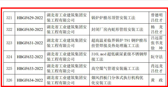 近日,湖北省住房和城鄉(xiāng)建設(shè)廳發(fā)布了《關(guān)于2022年度湖北省工程建設(shè)工法(土木工程類、工業(yè)安裝工程類)評審結(jié)果的公告》,安裝公司申報的《鍋爐爐膛吊頂管安裝工法》、《封閉廠房內(nèi)蛇形管組安裝工法》等6項工法被評為2022年度省級工法。
