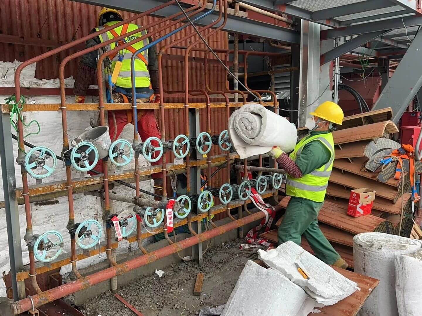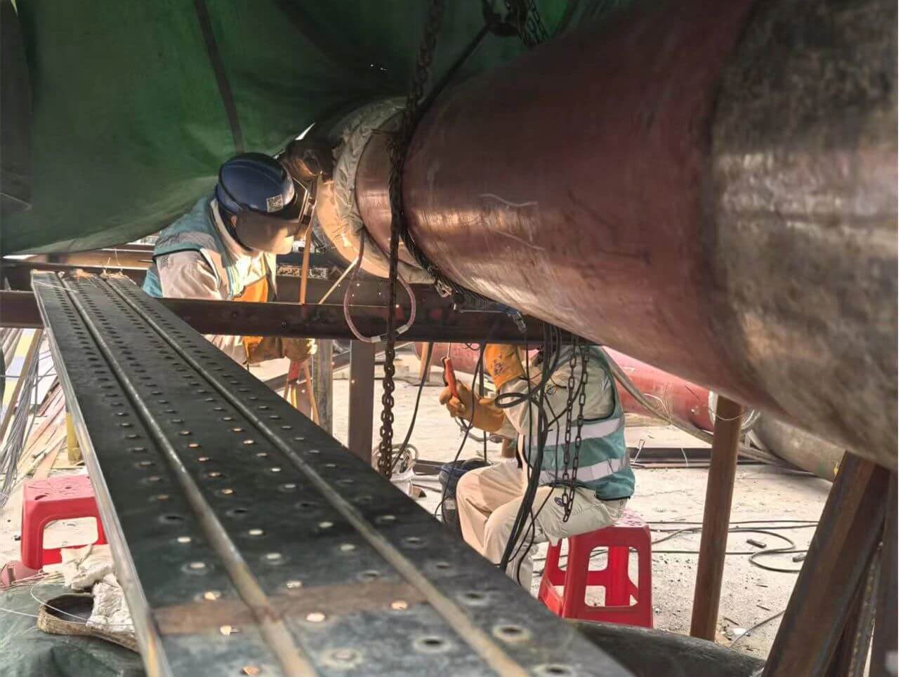 新春佳節(jié),闔家團圓之際,湖北應城雙環(huán)熱力項目的施工現(xiàn)場依舊一片熱火朝天。項目施工團隊爭分奪秒,全力推進鋼結構煤斗安裝以及煙囪內筒壁保溫層砂漿抹灰工作。為了實現(xiàn)鍋爐早日點火,他們放棄了與家人相聚的機會,毅然堅守在施工一線。寒風吹過,臉頰被凍得通紅,但他們手中的工具從未停歇,每一次精準的操作,每一滴灑落的汗水,都是對責任的無聲詮釋,每一個堅定的步伐,每一項高效完成的任務,都彰顯著他們的使命擔當。