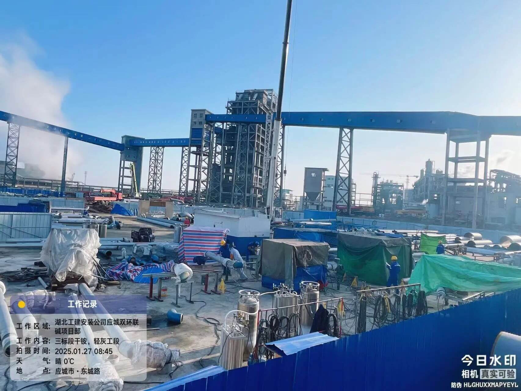 當新年鐘聲在夜空中悠悠敲響,萬家燈火漸次亮起,勾勒出團圓的溫馨畫面時,湖北應城雙環(huán)堿改項目施工現(xiàn)場卻依舊燈火通明,機器的轟鳴聲交織成一曲奮進的樂章。項目土建、設備、管道專業(yè)施工已完成 90%,距離竣工近在咫尺。春節(jié)期間,項目建設進入關鍵沖刺階段,施工團隊爭分奪秒,全力推進電氣儀表安裝和試壓包管道作業(yè),為節(jié)后電纜敷設和水壓試驗的順利開展筑牢根基。